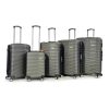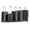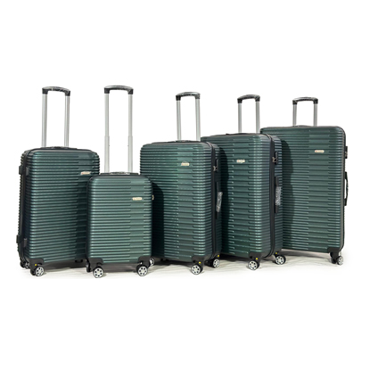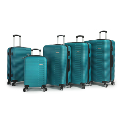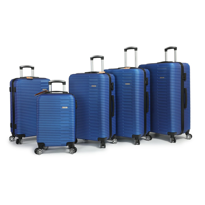 Five piece trolley cases set comprising 31inch, 29inch, 27inch, 25inch and 19inch cabin size. Features include; lightweight high impact ABS shell, spring loaded grab handles, push button locking telescopic handle, internal trolley frame, integral security combination locks, and 4 castor wheels for easy glide-360 degree mobility. Inside the cases are fully lined.